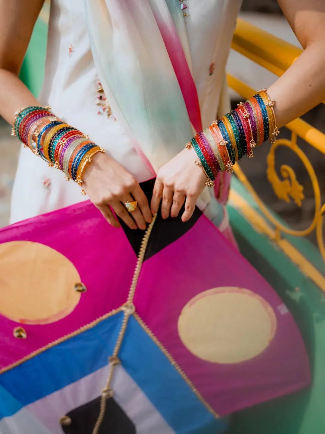 Multi-Color Viral Kashmiri Bangles Set-1 dozen - (4 Ghunghru Kara 12 Bangles)